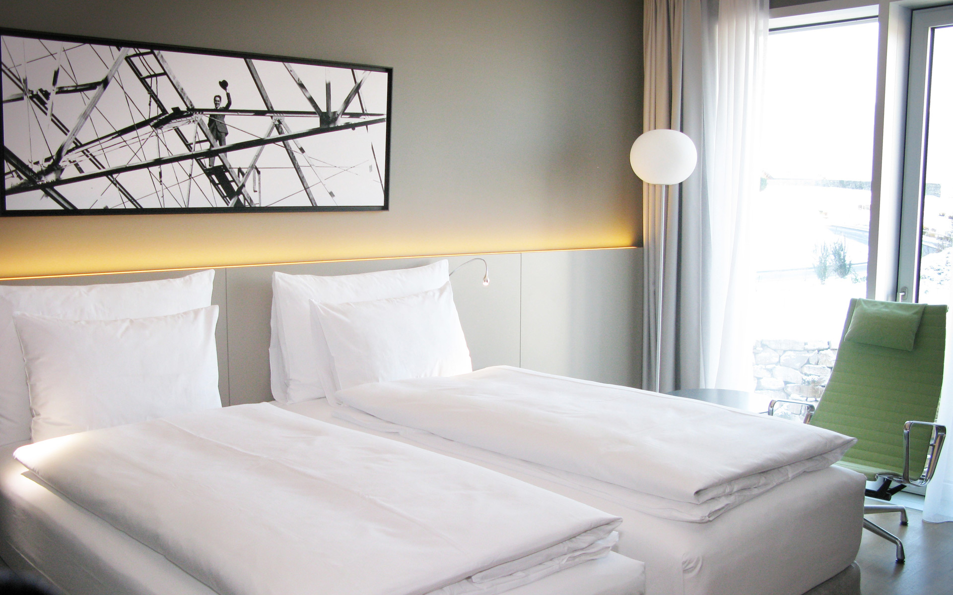 Die Junior Suiten befinden sich im obersten Stockwerk des Hotels und bieten eine grosse Fensterfront mit endloser Aussicht. Der perfekte Ort, um sich zurückzuziehen und dem Alltagsstress zu entfliehen.
